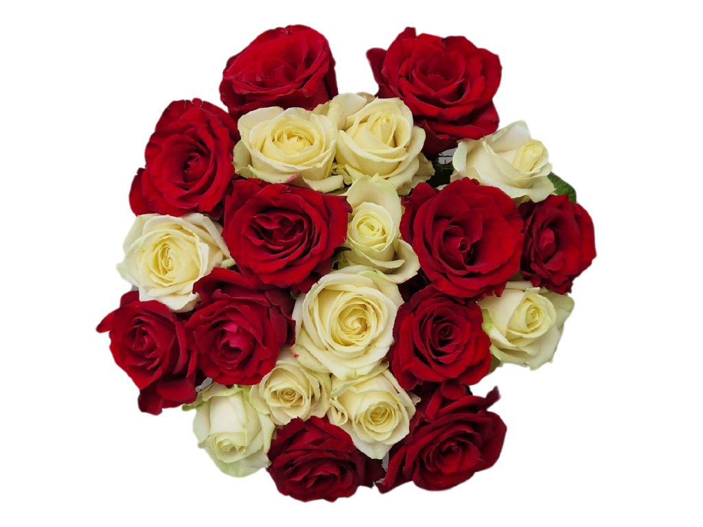 Kytice rudých a bílých růží délky 70 cm 15 kusů