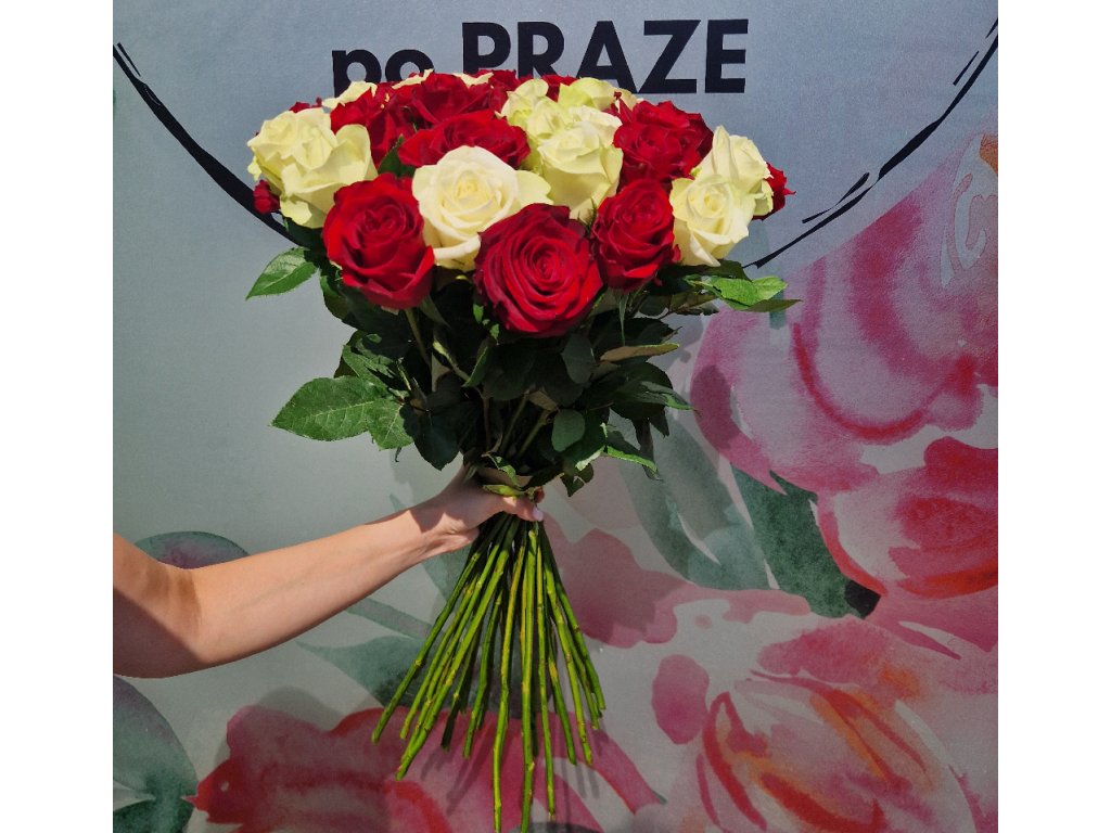Kytice rudých a bílých růží délky 70 cm 9 kusů